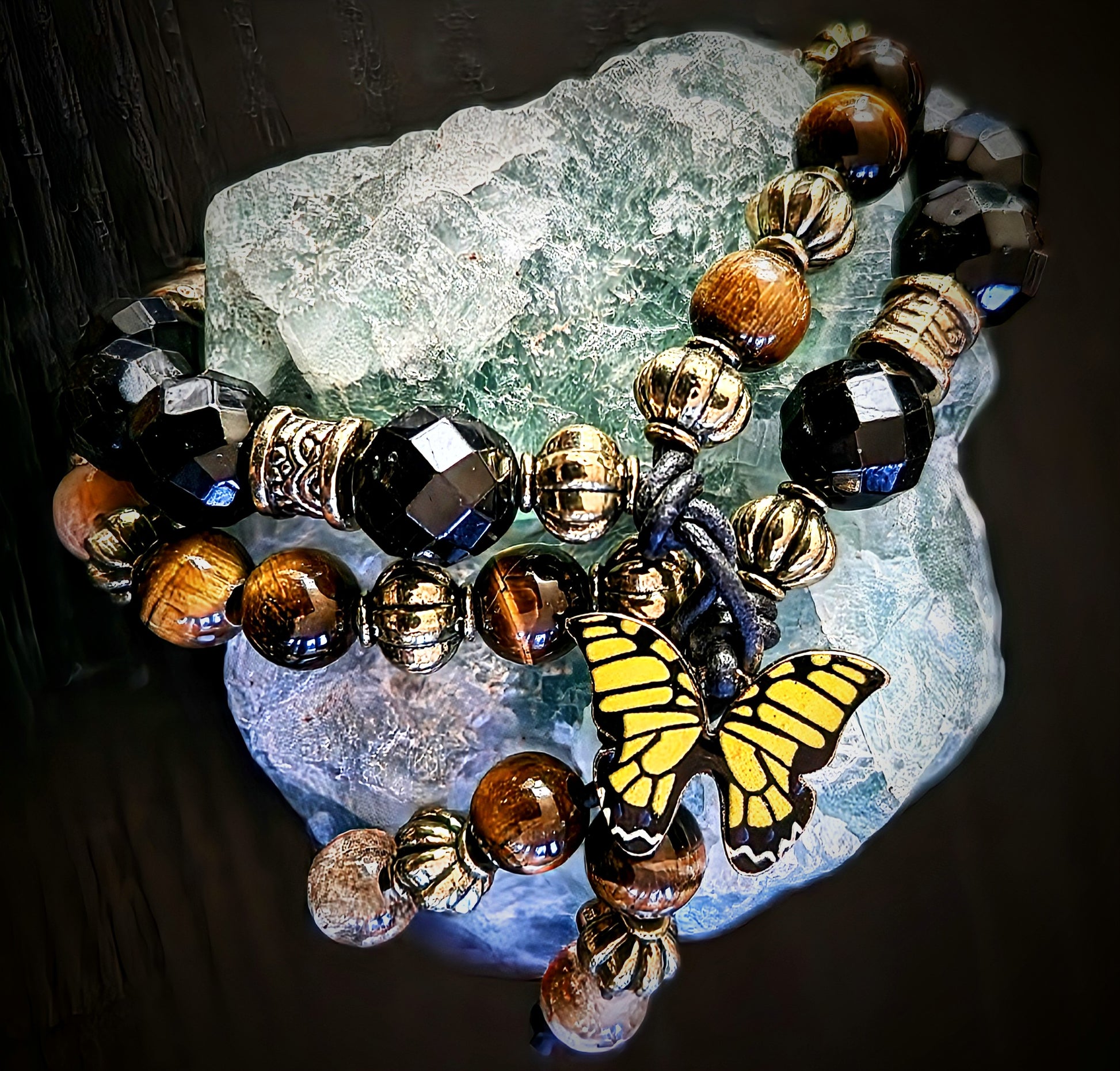 Golden Tiger Eye Dual Crystal Energy with Butterfly Charm Clasp